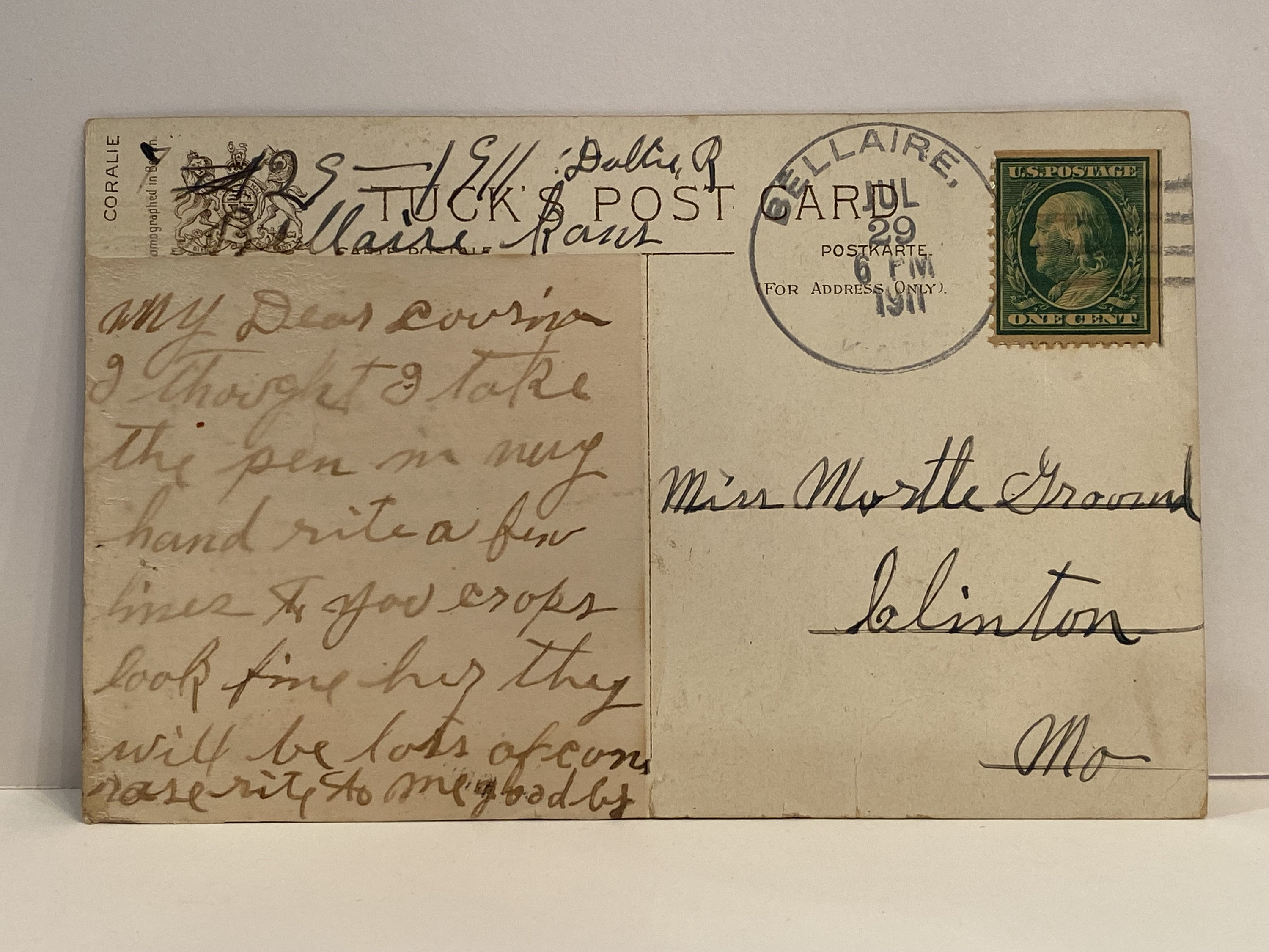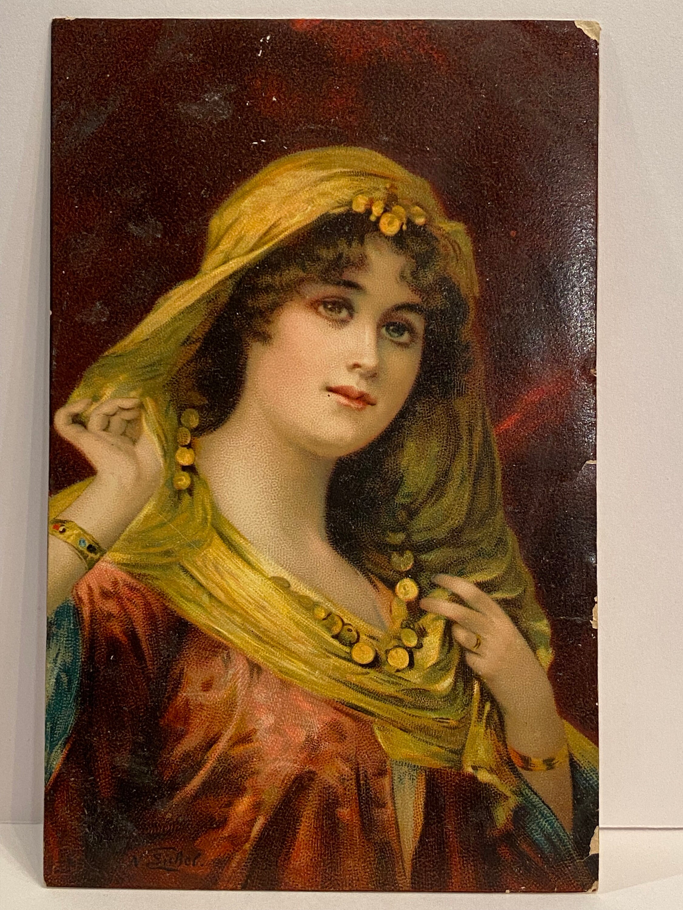 This 1911 Antique postcard by Raphael Tuck of a beautiful woman is in fair condition.