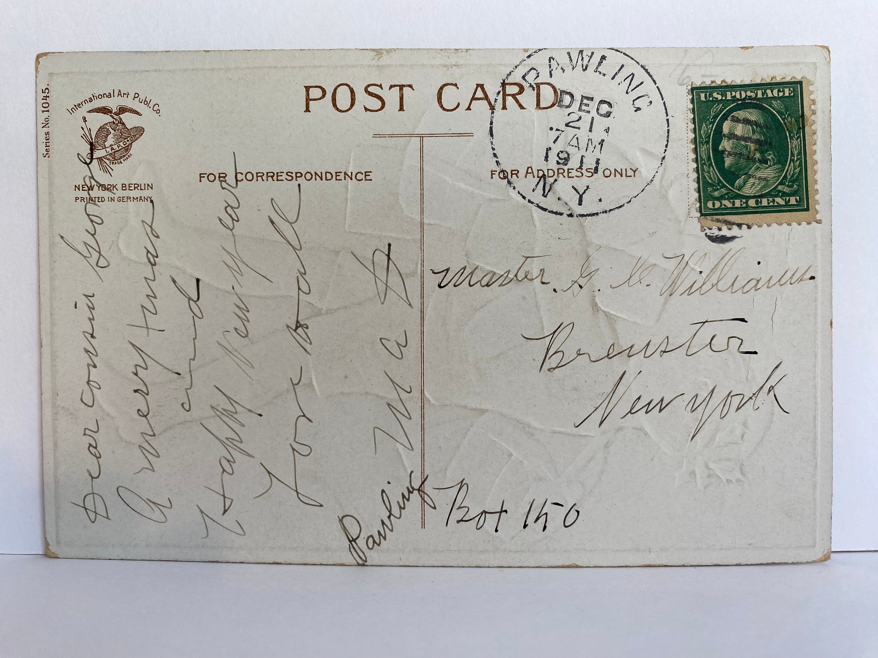 This is a wonderful antique postcard by artist Ellen Clapsaddle from 1911. It is postmarked from Pawling, NY on Dec. 21, 1911